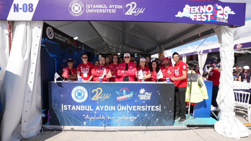 Prof. Dr. Mustafa Aydın did not leave the students and entrepreneurs of Istanbul Aydın University who participated in TEKNOFEST Istanbul, the world’s largest space and technology festival, alone. Expressing his pride in the young people’s belief in turning their dreams into reality at TEKNOFEST, the strongest stage of the national technology initiative, Prof. Dr. Mustafa Aydın said, “As Istanbul Aydın University, participating in TEKNOFEST and contributing to our national technology initiative is a great source of pride for us. Every step we take gives us great hope as we see the level our country has reached in science, technology, and innovative ideas. Here, there are not only competitions; there is also the vision and determination to build the future of a nation.”