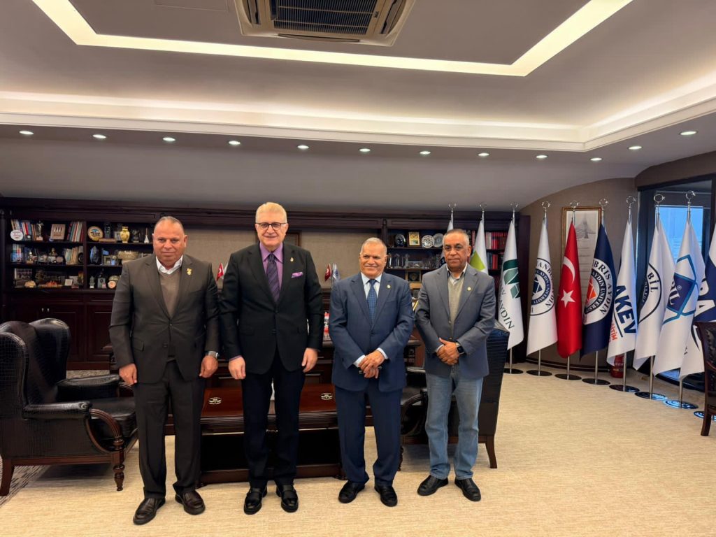 Prof. Dr. Mustafa Aydın hosted Hasan Shakir Majdi, Chairman of the Board of Trustees of Al-Mustaqbal University, along with his delegation and university administrators at a dinner meeting.